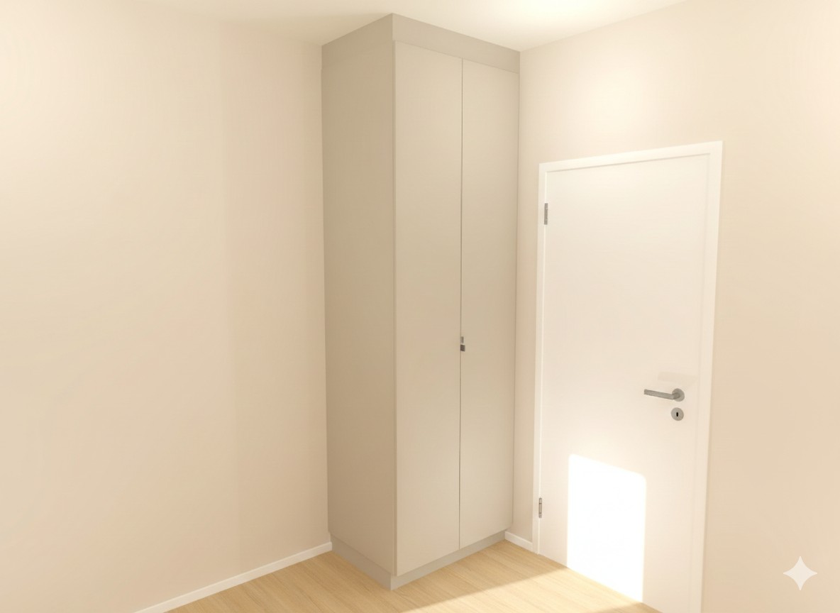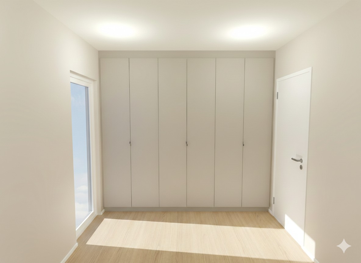 Svefnherbergi: Öll með sérsmíðuðum fataskápum frá TAK.