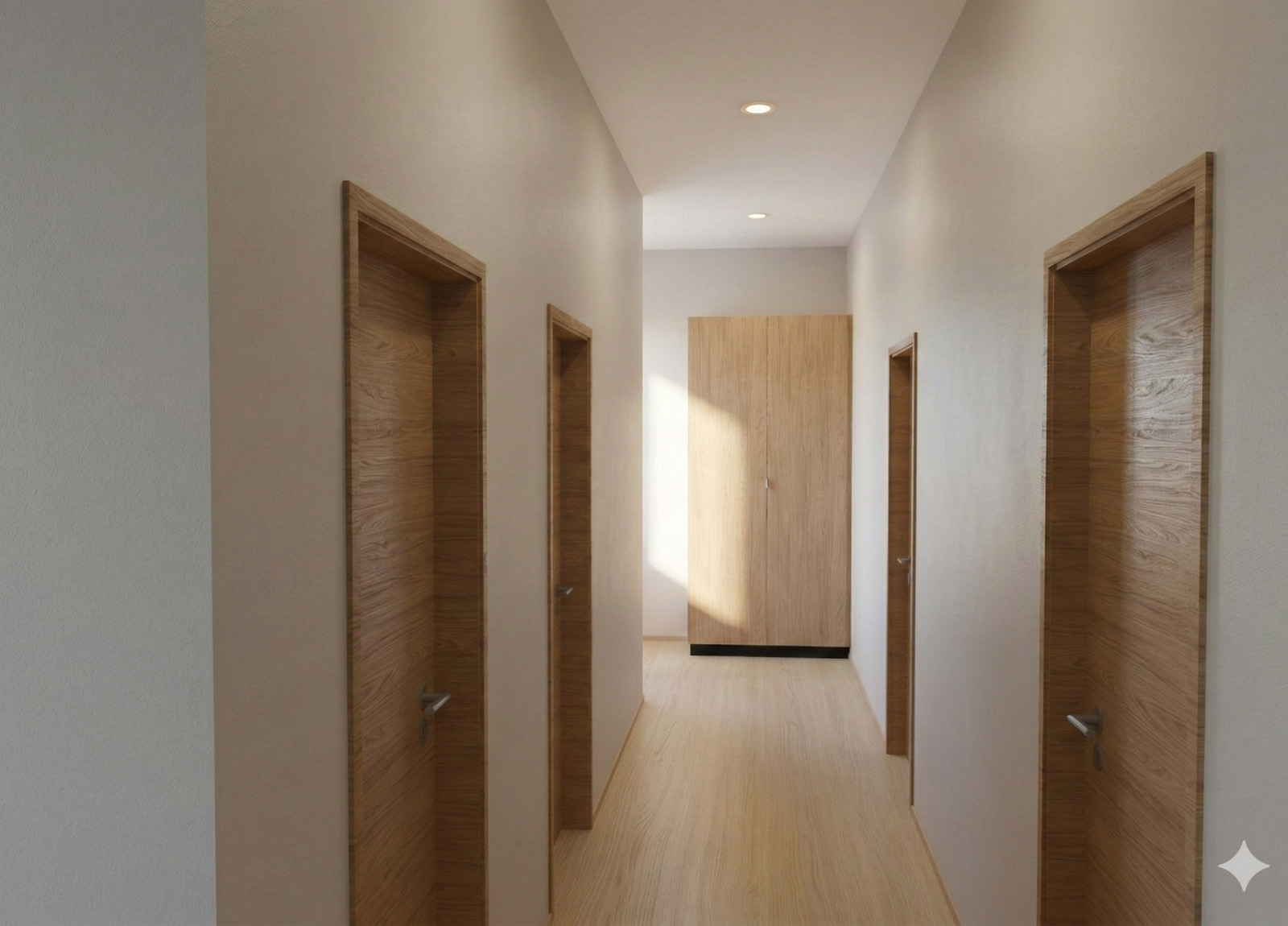 Svefnherbergi: Öll með sérsmíðuðum fataskápum frá TAK.