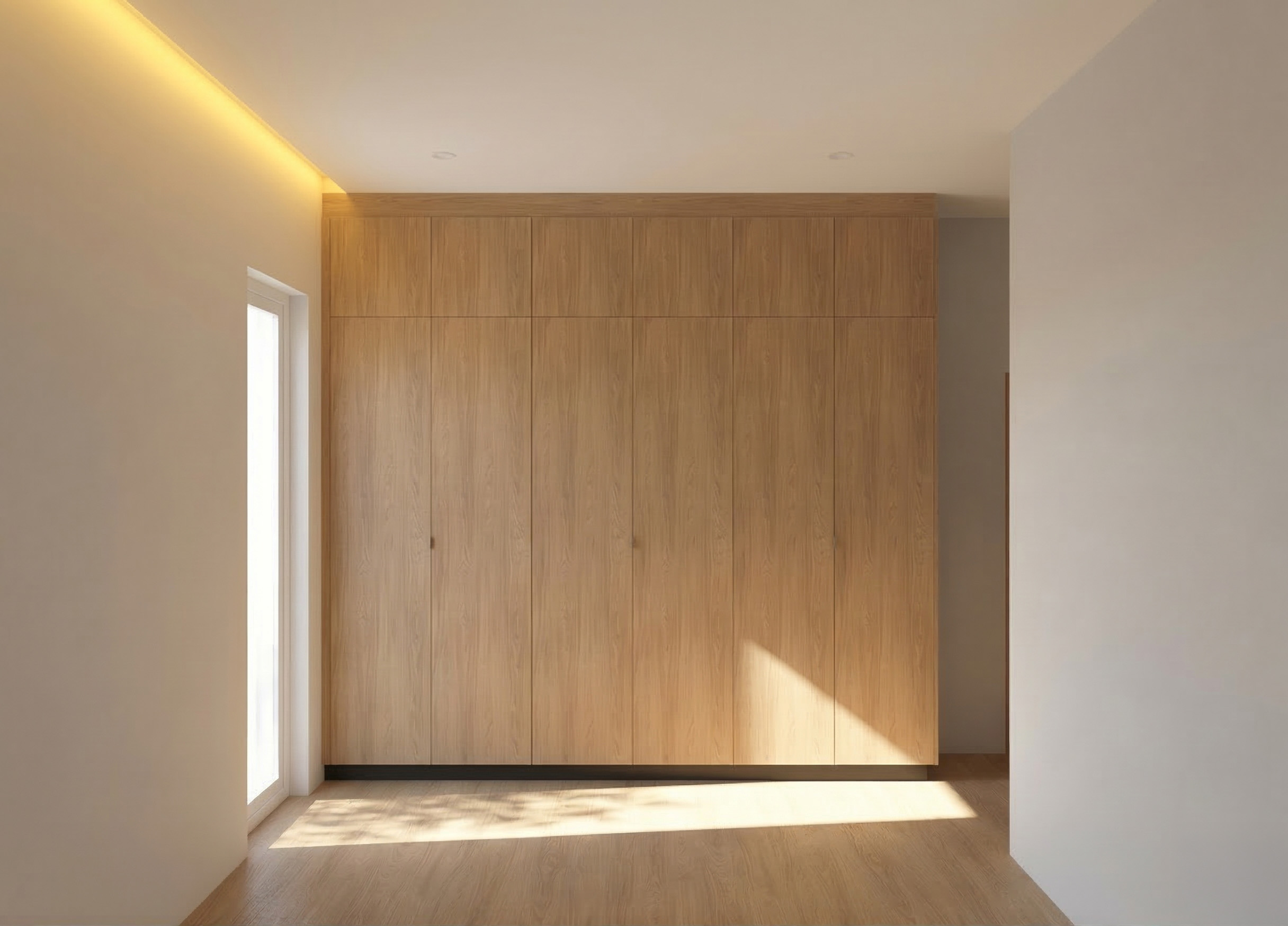 Svefnherbergi: Öll með sérsmíðuðum fataskápum frá TAK.