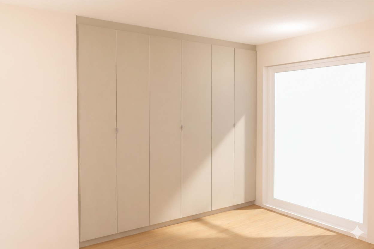Svefnherbergi: Öll með sérsmíðuðum fataskápum frá TAK.