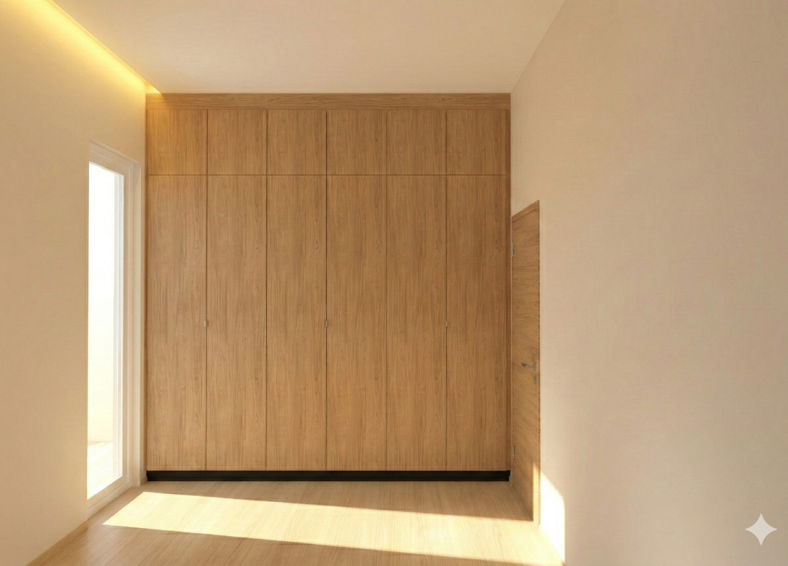 Svefnherbergi: Öll með sérsmíðuðum fataskápum frá TAK.
